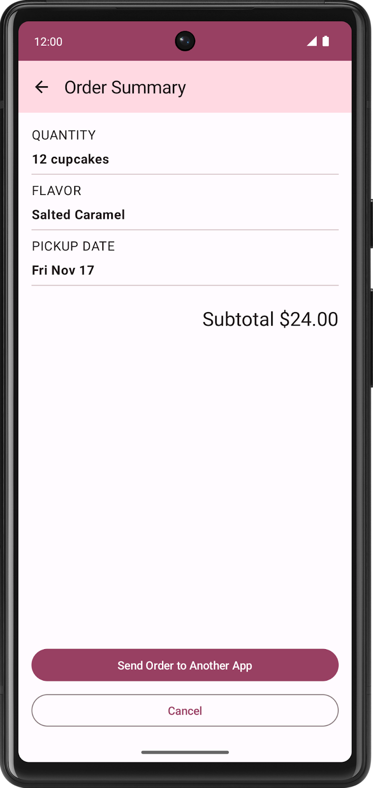 Selesaikan langkah-langkah berikut untuk membuat intent guna mengirim pesanan cupcake ke aplikasi lain: