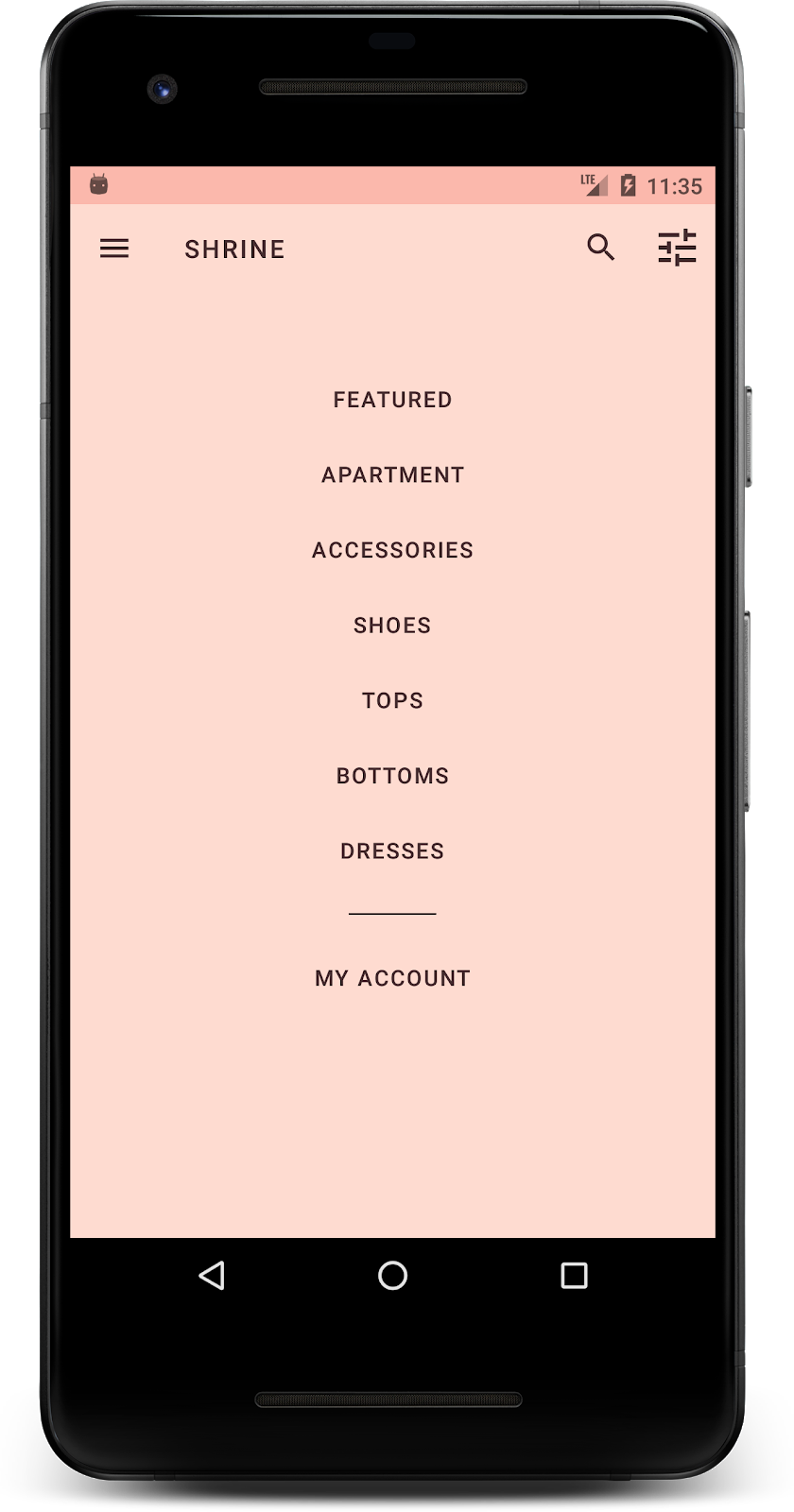 In this codelab, you'll add a backdrop to Shrine. It will filter the products shown in the asymmetrical grid by category. You'll be using: