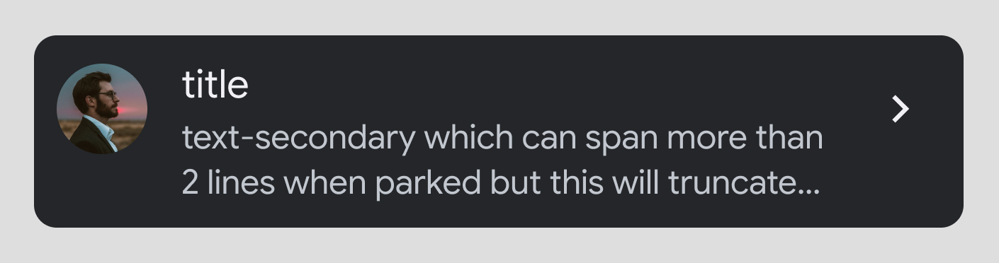 Texte secondaire plus long : si le texte secondaire comporte plus de deux lignes, il sera tronqué pendant la conduite. Le texte complet ne sera visible que lorsque le véhicule sera à l'arrêt.