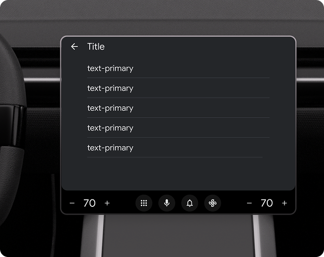 مقدار متن ثانویه مجاز در هر ردیف فهرست بسته به پارک یا رانندگی خودرو متفاوت است. برای به حداقل رساندن حواس پرتی، متن در حین رانندگی به 2 خط کوتاه می شود. هر متنی که قرار است در حین رانندگی خوانده شود باید در ابتدای متن ثانویه نمایش داده شود.