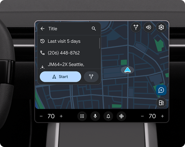 جزئیات مکان برای یک برنامه پارکینگ، با دو عملکرد مرتبط (شروع و بدون تشکر) جزئیات مکان برای یک کافه، با دو عمل. به دلیل محدودیت اندازه، متن مربوط به دکمه عمل دوم پنهان است و فقط نماد آن نشان داده می شود.