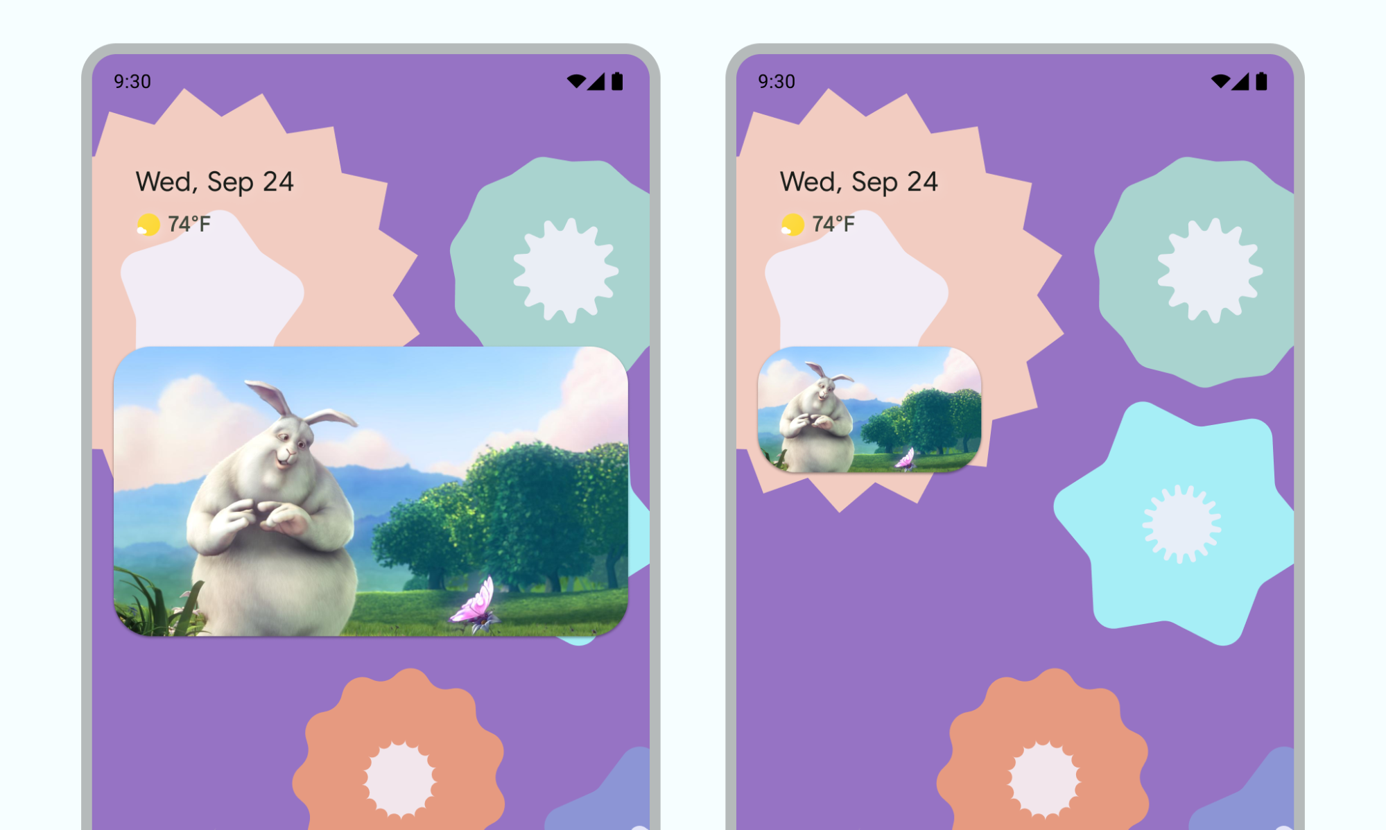 اندروید 12 بهبودهای زیبایی قابل توجهی را به انتقال متحرک بین پنجره های تمام صفحه و PiP اضافه کرد. ما قویاً توصیه می کنیم همه تغییرات قابل اجرا را اجرا کنید. هنگامی که این کار را انجام دادید، این تغییرات به طور خودکار به صفحه نمایش های بزرگ مانند تاشوها و تبلت ها بدون نیاز به کار بیشتر تبدیل می شوند.