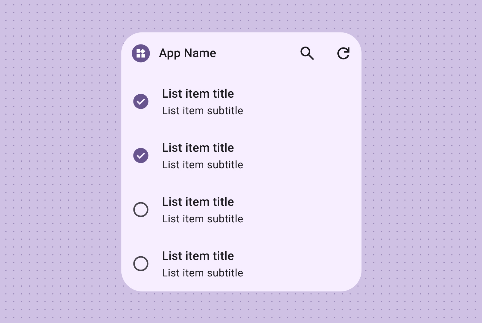 از طرحبندیهای فهرست برای سازماندهی چندین مورد در قالبی واضح و قابل اسکن استفاده کنید. این برای سرفصلهای اخبار، فهرستهای کار یا پیامها ایدهآل است. محتوا را در یک لیست ساختاریافته و به راحتی قابل اسکن سازماندهی کنید. بر اساس نیازهای محتوای خود، بین ارائههای حاوی کانتینر یا بدون کانتینر یکی را انتخاب کنید.