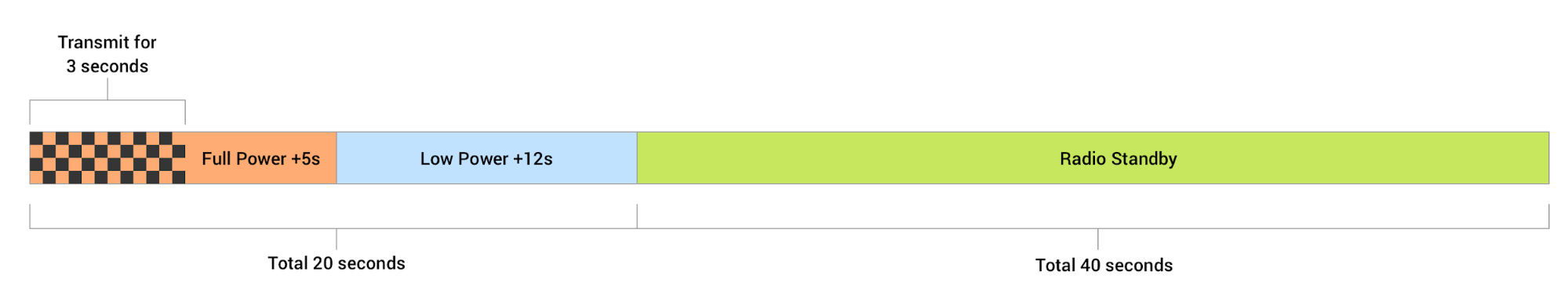 Salah satu faktor penting yang perlu diingat adalah radio tidak dapat beralih dari standby ke aktif sepenuhnya secara instan. Ada periode latensi yang terkait dengan "mengaktifkan" radio. Jadi, baterai beralih dari status energi yang lebih tinggi ke status energi yang lebih rendah secara perlahan untuk menghemat daya saat tidak digunakan, sekaligus berupaya meminimalkan latensi yang terkait dengan "penyalaan" radio.