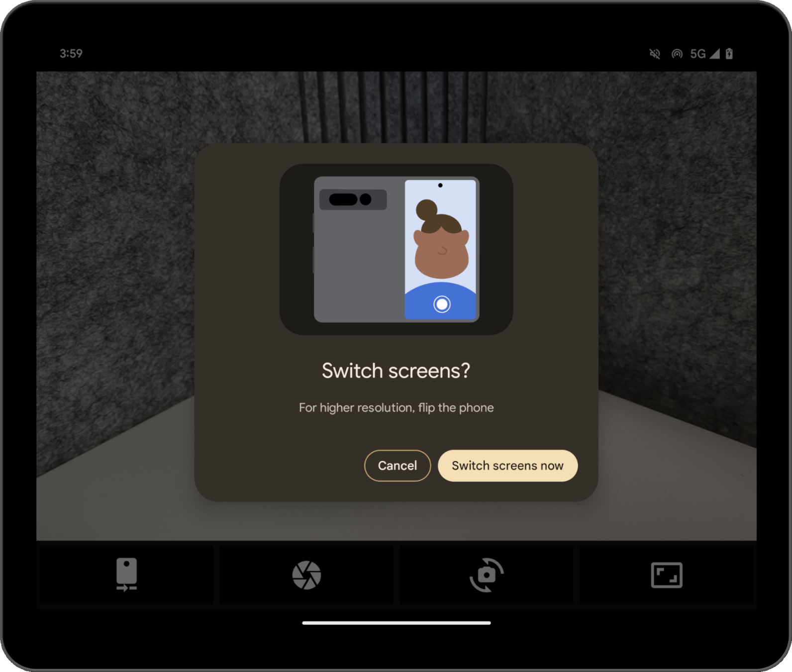 如需启用后置显示屏模式,用户需响应对话框以允许应用执行以下操作: 切换屏幕,例如: