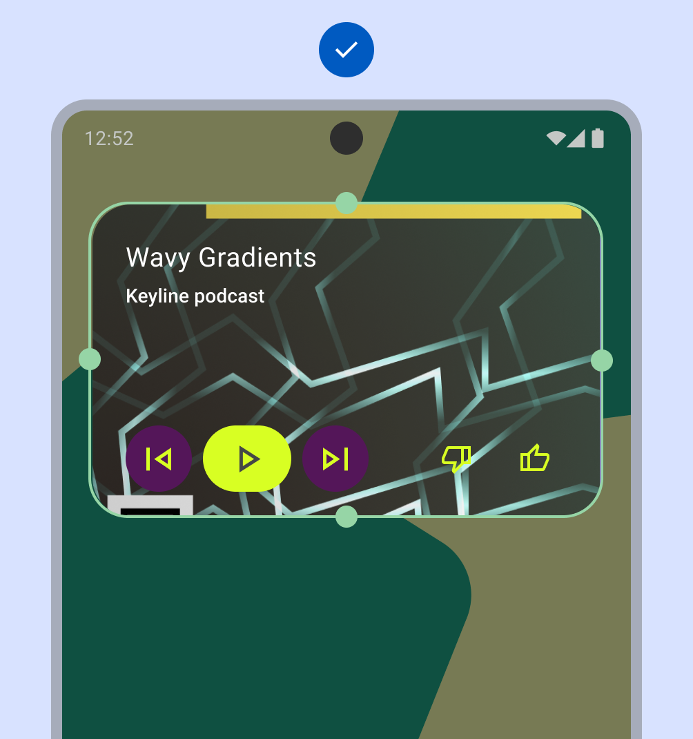 উইজেট গ্রিডের অন্তত 2টি বিপরীত প্রান্ত স্পর্শ করে না। অন্য কথায়, উইজেটগুলির সমস্ত আয়তক্ষেত্রাকার হওয়ার দরকার নেই, তাদের কাস্টম আকার থাকতে পারে, যতক্ষণ না আকারের প্রান্তগুলি গ্রিডের কমপক্ষে 2টি প্রান্তকে স্পর্শ করে।