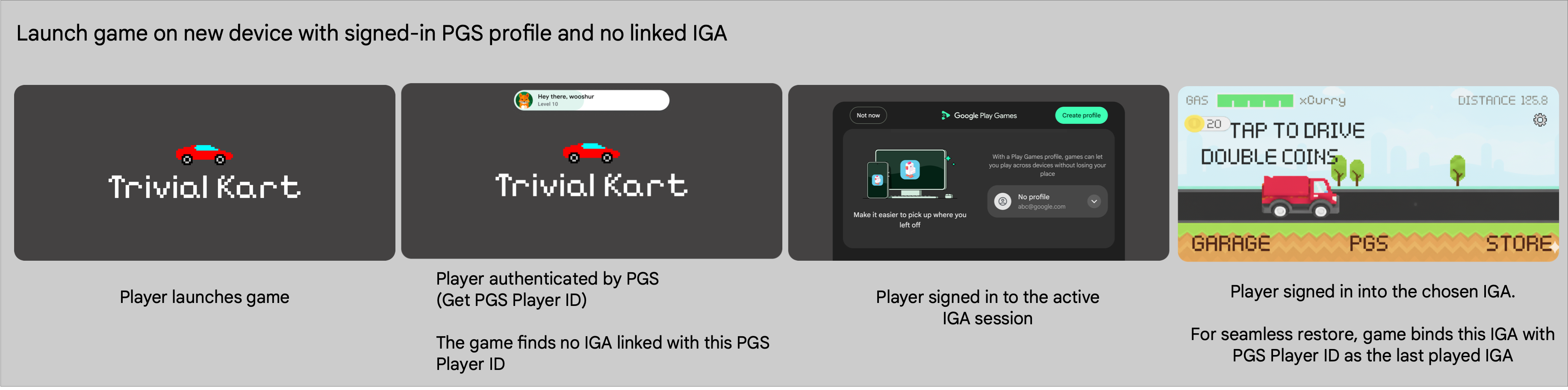 - The game also binds this chosen IGA to the PGS Player ID, marking it as the last played IGA for seamless restore.