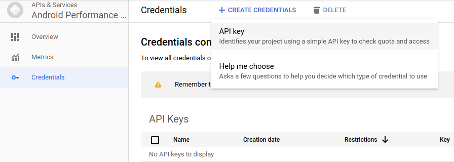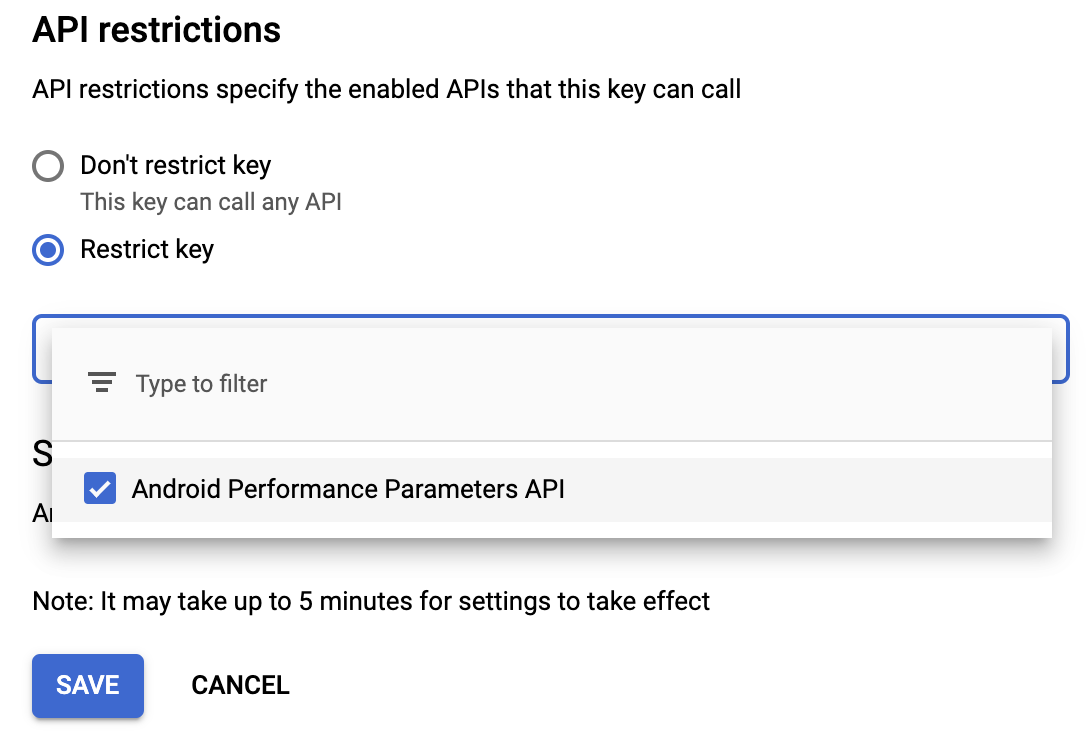 Limita la chiave API all'API Android Performance Parameters:
