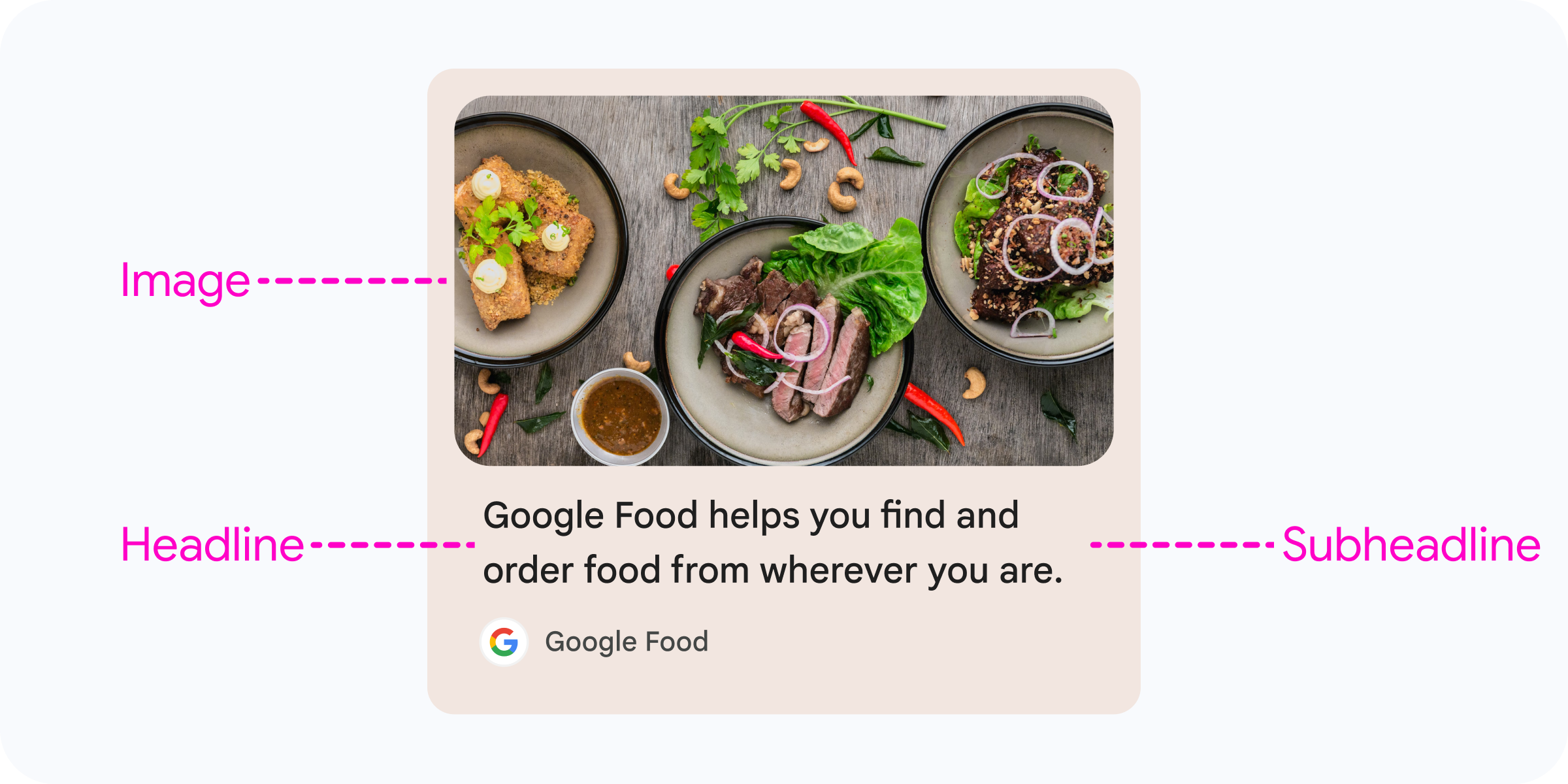 Los clústeres de Recommendation muestran sugerencias personalizadas relacionadas con comida de un socio desarrollador individual. Estas recomendaciones se pueden personalizar para el usuario o generalizar (por ejemplo, si incluye artículos nuevos a la venta). Úsalos para mostrar recetas, tiendas, platos, comestibles y mucho más cuando lo creas conveniente.