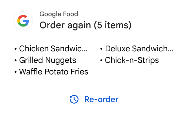 <action android:name="com.google.android.engage.action.food.PUBLISH_REORDER_CLUSTER" />