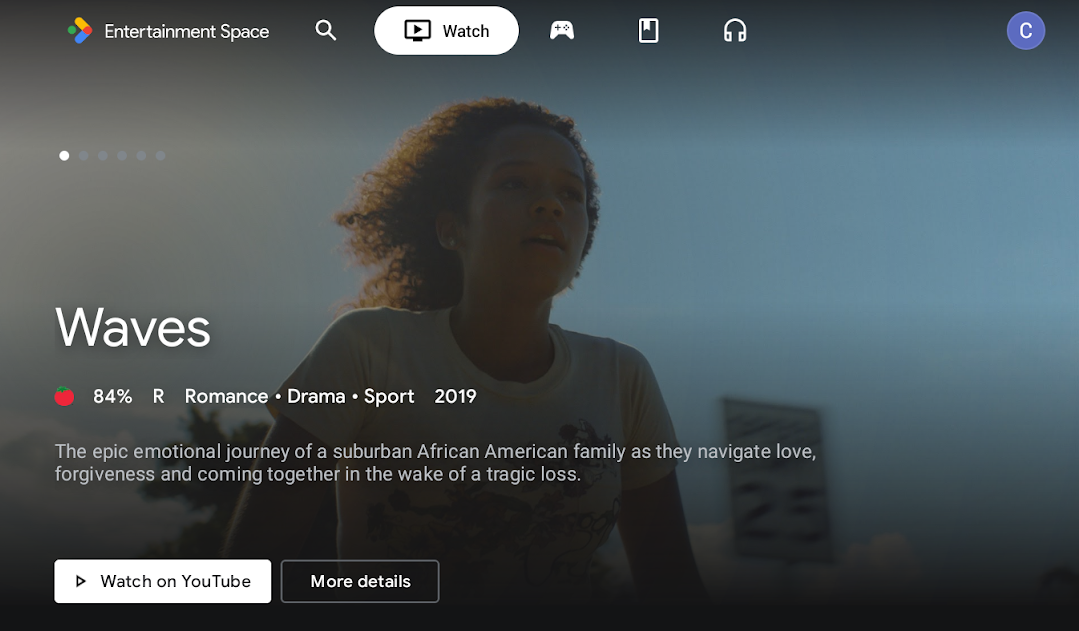 En el clúster de Continuation, se muestran los videos sin terminar y los episodios nuevos y relevantes de varios socios desarrolladores en una sola agrupación de IU. Cada socio desarrollador podrá transmitir un máximo de 10 entidades en el clúster de Continuation. Algunas investigaciones muestran que las recomendaciones personalizadas y el contenido de Continuation personalizado crean una mejor participación del usuario.
