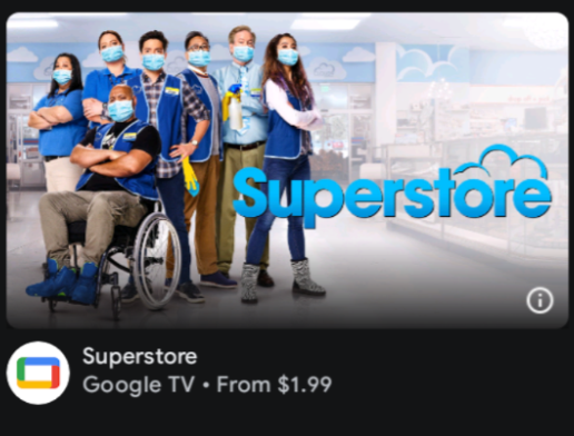 Figure 1. Entertainment Space UI showing a Recommendation Cluster from a single partner. Entity: An object representing a single item in a cluster. An entity can be a movie, a TV show, a TV series, live video, and more. See the Provide entity data section for a list of supported entity types.