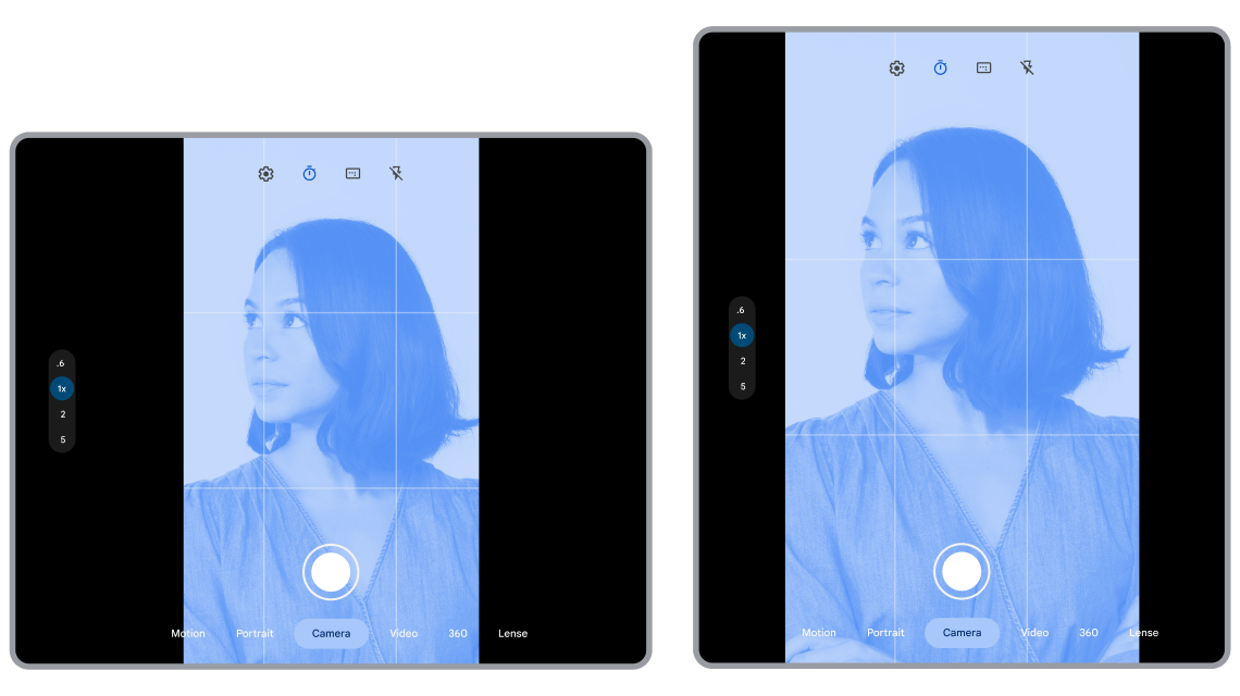 Display#getRotation()возвращаетSurface.ROTATION_0. Если приложения предполагают, чтоROTATION_0— портретная ориентация, макеты приложений и предварительный просмотр с камеры могут не соответствовать дисплею устройства. - Складные устройства с альбомной ориентацией: некоторые складные устройства, такие как Pixel Fold, в сложенном состоянии имеют портретную ориентацию, а в разложенном — альбомную. Если приложения считают, что в разложенном состоянии портретная ориентация, вероятно появление мерцающих зацикливаний или проблем с компоновкой.