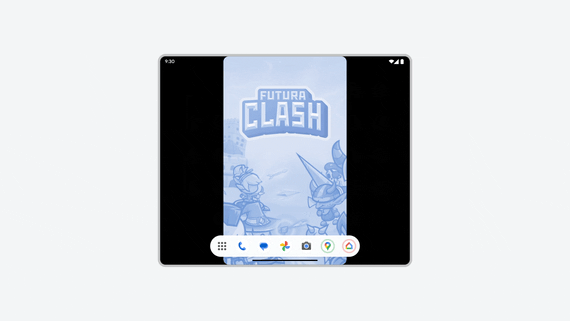 Рисунок 1. Приложение, ограниченное портретной ориентацией, отображается в формате Letterbox на планшете с альбомной ориентацией и является складным.