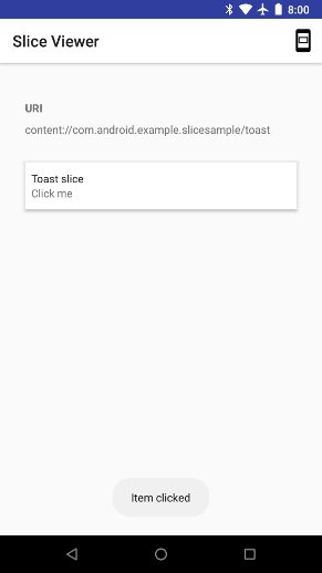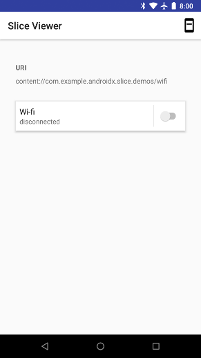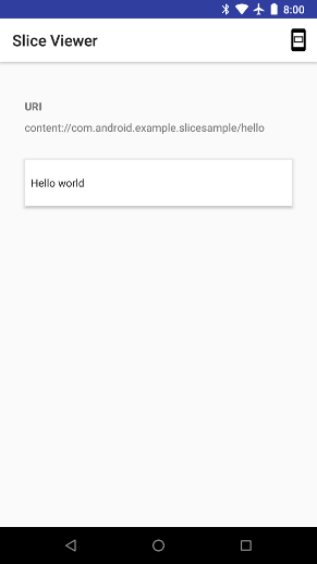 از پیکربندی اجرای slice که در بخش Slice Viewer در بالا ایجاد کردید، استفاده کنید و URI Slice خود (به عنوان مثال slice-content://com.android.example.slicesample/hello