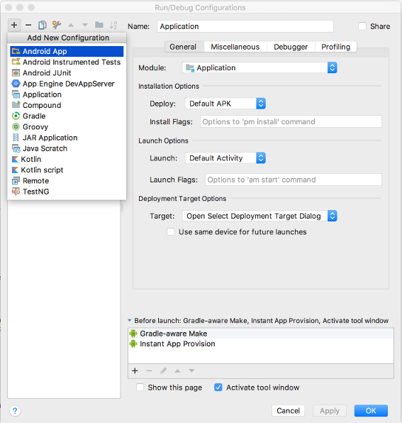 برنامه اندروید را انتخاب کنید