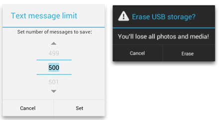 متدهای set...Button() به یک عنوان برای دکمه نیاز دارند – که توسط یک منبع رشته ارائه می شود – و یک DialogInterface.OnClickListener که عملی را که باید هنگام ضربه زدن کاربر روی دکمه انجام شود را مشخص می کند.
