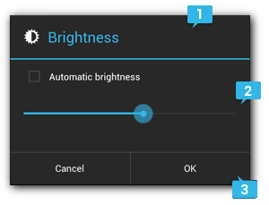 کلاس Dialog کلاس پایه برای دیالوگ ها است، اما Dialog مستقیماً نمونه سازی نکنید. در عوض، از یکی از زیر کلاس های زیر استفاده کنید: