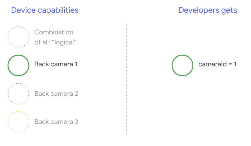 In most cases, devices running Android 9 and higher expose all physical cameras (except possibly for less-common sensor types like infrared) along with an easier-to-use logical camera. For every combination of streams that are guaranteed to work, one stream belonging to a logical camera can be replaced by two streams from the underlying physical cameras.