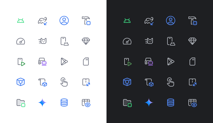 تتضمّن واجهة المستخدم الجديدة أيضًا مجموعة حديثة من الرموز التي تتميز بتصميم أكثر وضوحًا وسهولة في القراءة والتمييز، ما يقدّم تجربة متّسقة بصريًا على مستوى بيئة التطوير المتكاملة.