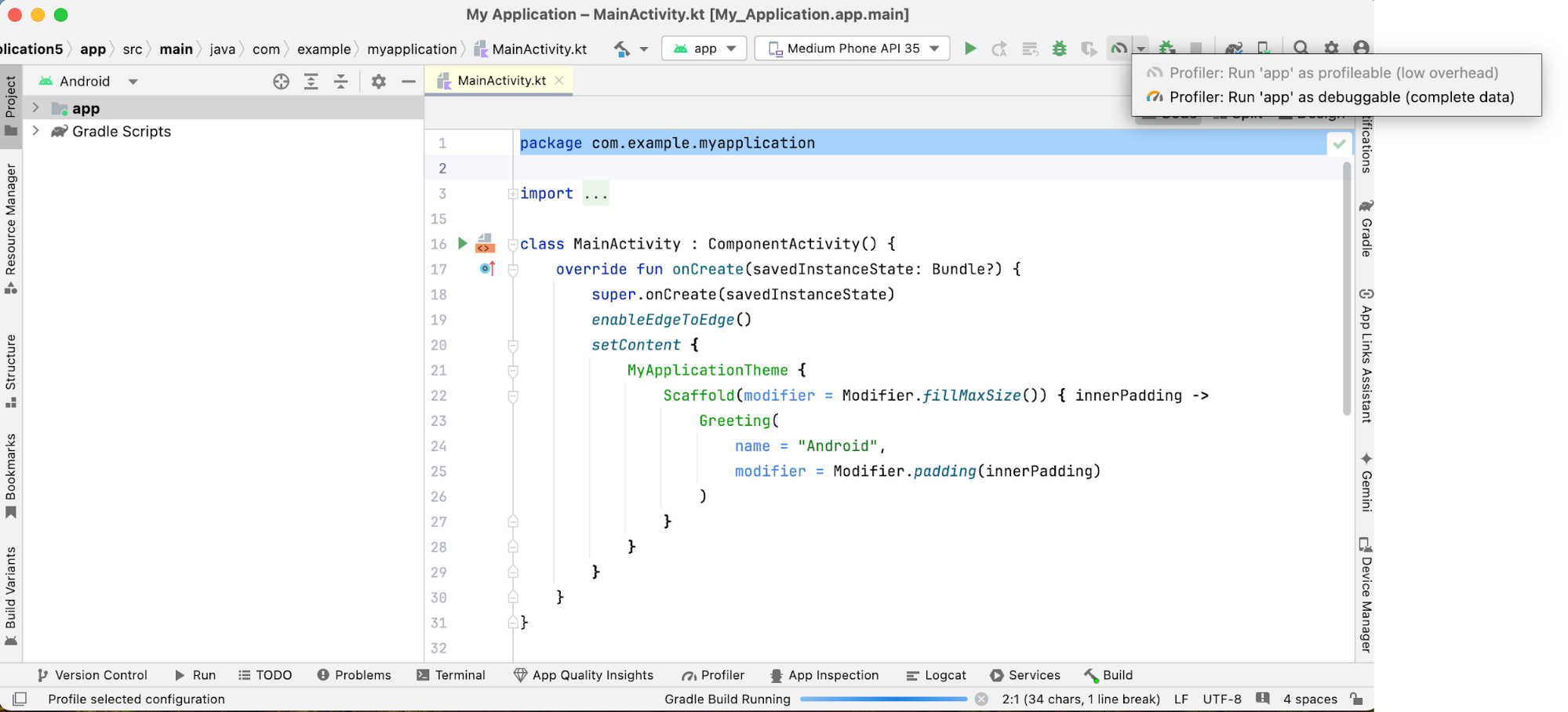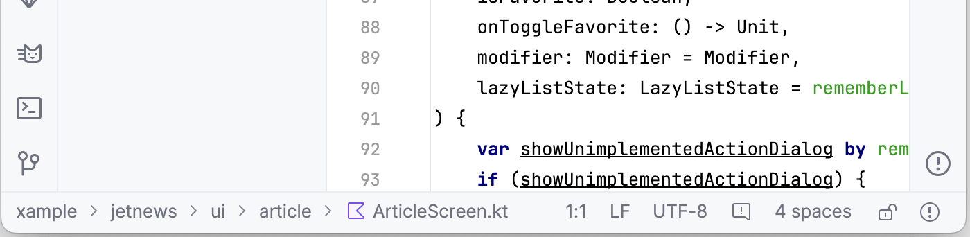 Android Studio Ladybug 功能分块引入了 IntelliJ Platform 2024.2 更新中的新界面作为默认主题。新界面采用了简洁的设计和增强型功能,让新手和经验丰富的开发者都能更轻松地更高效地浏览工作流。