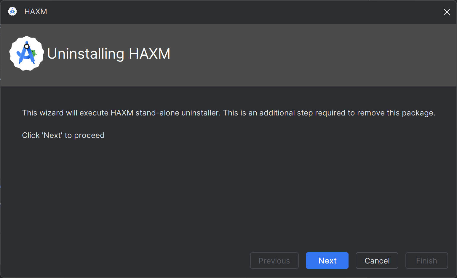 在这两种情况下,无论 Intel HAXM 是正在运行还是已停用,它都会安装。您需要前往下一步,才能继续卸载 Intel HAXM。
