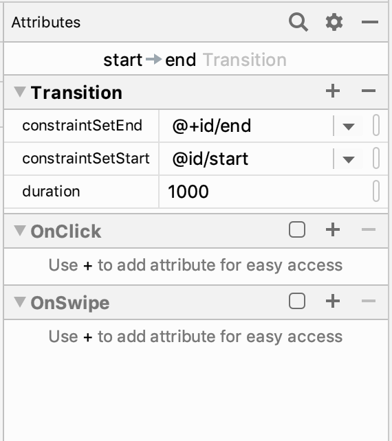 然后,您可以修改开始或结束 ConstraintSet 的约束条件和属性,修改方式与修改 ConstraintLayout 一样。