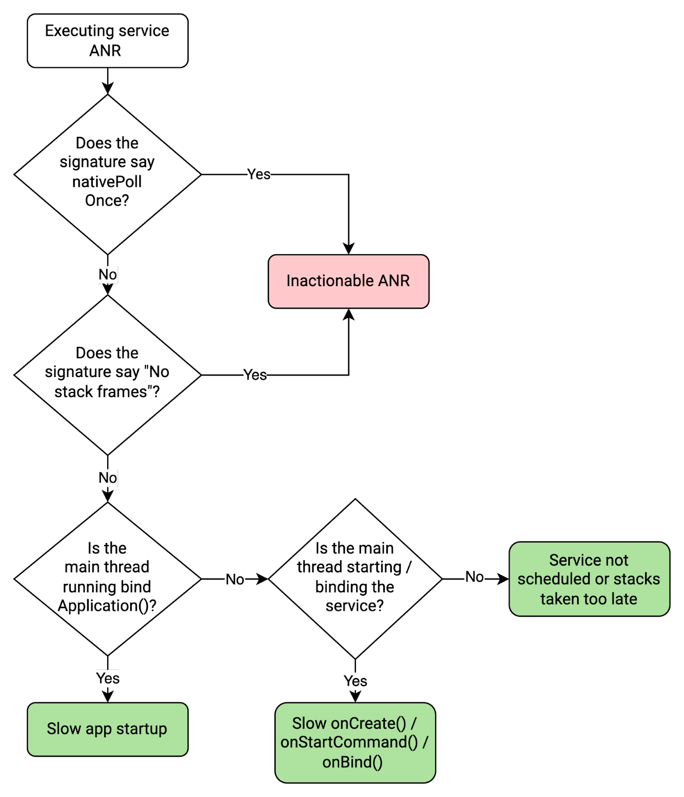 class is slow, the main threads will look like this:at com.example.app.MyService.onStartCommand(FooService.java:25) at android.app.ActivityThread.handleServiceArgs(ActivityThread.java:4820) at android.app.ActivityThread.-$$Nest$mhandleServiceArgs(unavailable:0) at android.app.ActivityThread$H.handleMessage(ActivityThread.java:2289) at android.os.Handler.dispatchMessage(Handler.java:106) at android.os.Looper.loopOnce(Looper.java:205) at android.os.Looper.loop(Looper.java:294) at android.app.ActivityThread.main(ActivityThread.java:8176) at java.lang.reflect.Method.invoke(Native method:0)
